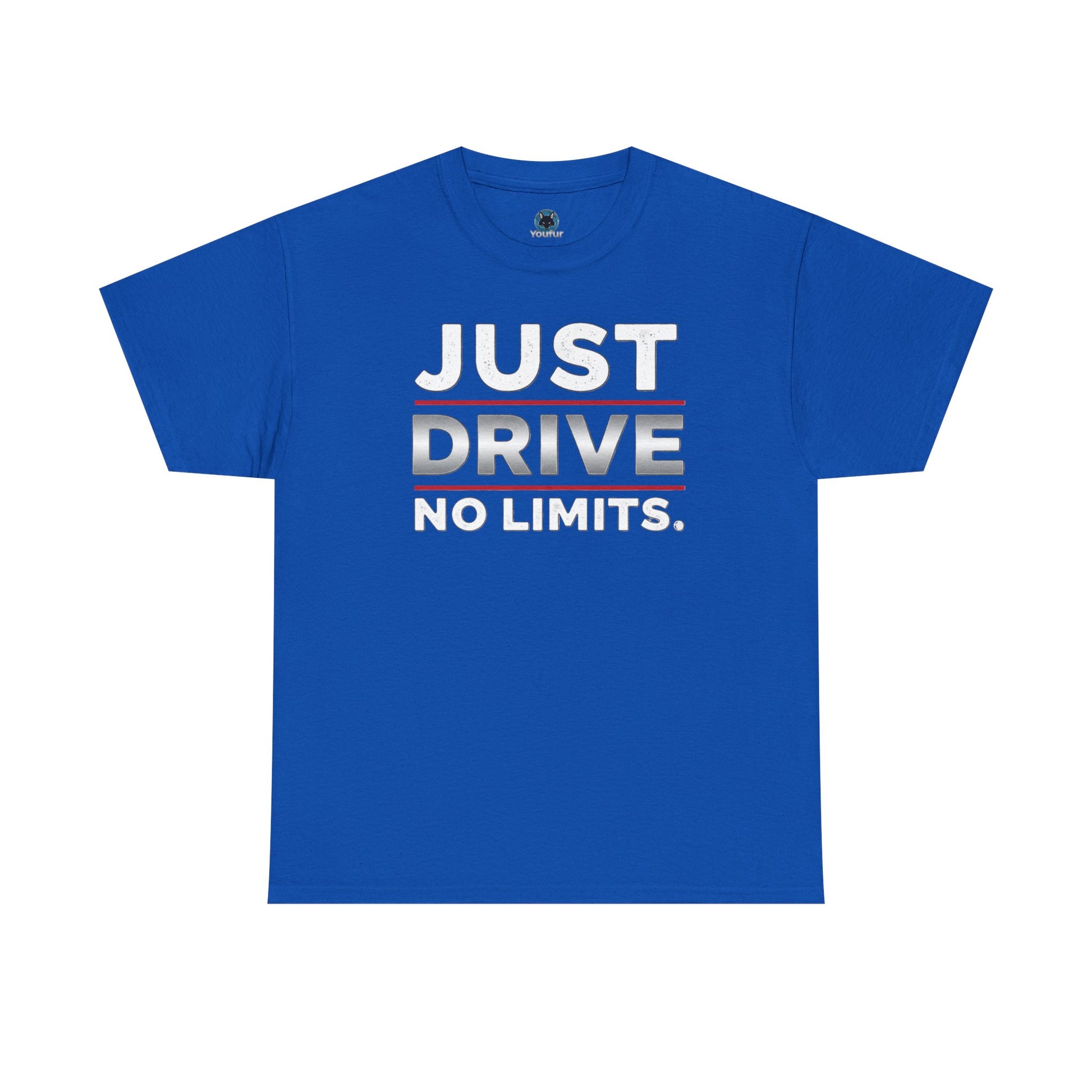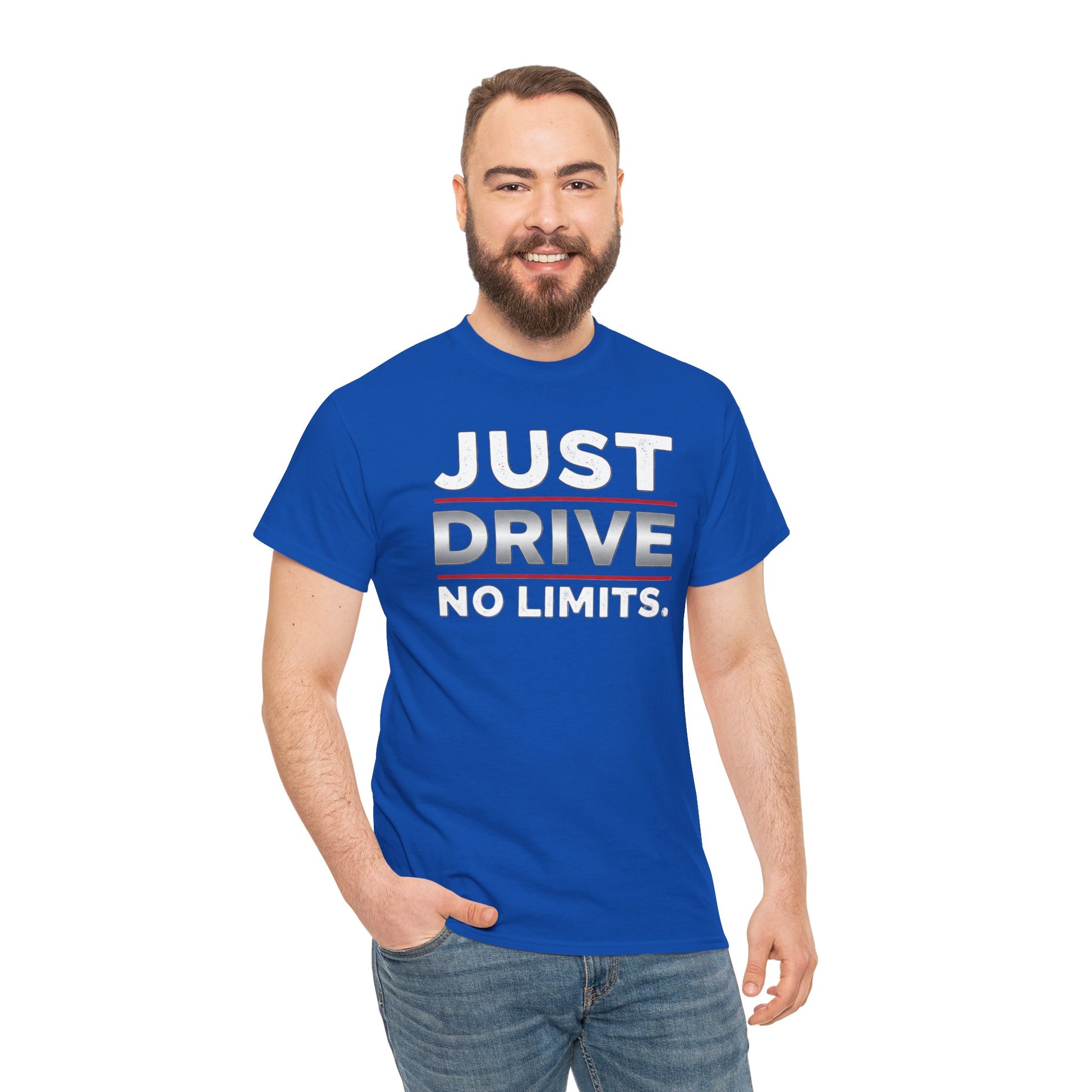 A stylish and versatile T-Shirt featuring a 'Just drive no limits' design, perfect for those who love to express their adventurous spirit. This tee is ideal for casual wear and can be a great addition to any wardrobe. It is relevant for outdoor enthusiasts, travelers, and those who enjoy road trips and adventures. Suitable for gifting on birthdays, anniversaries, or as a motivational gift.