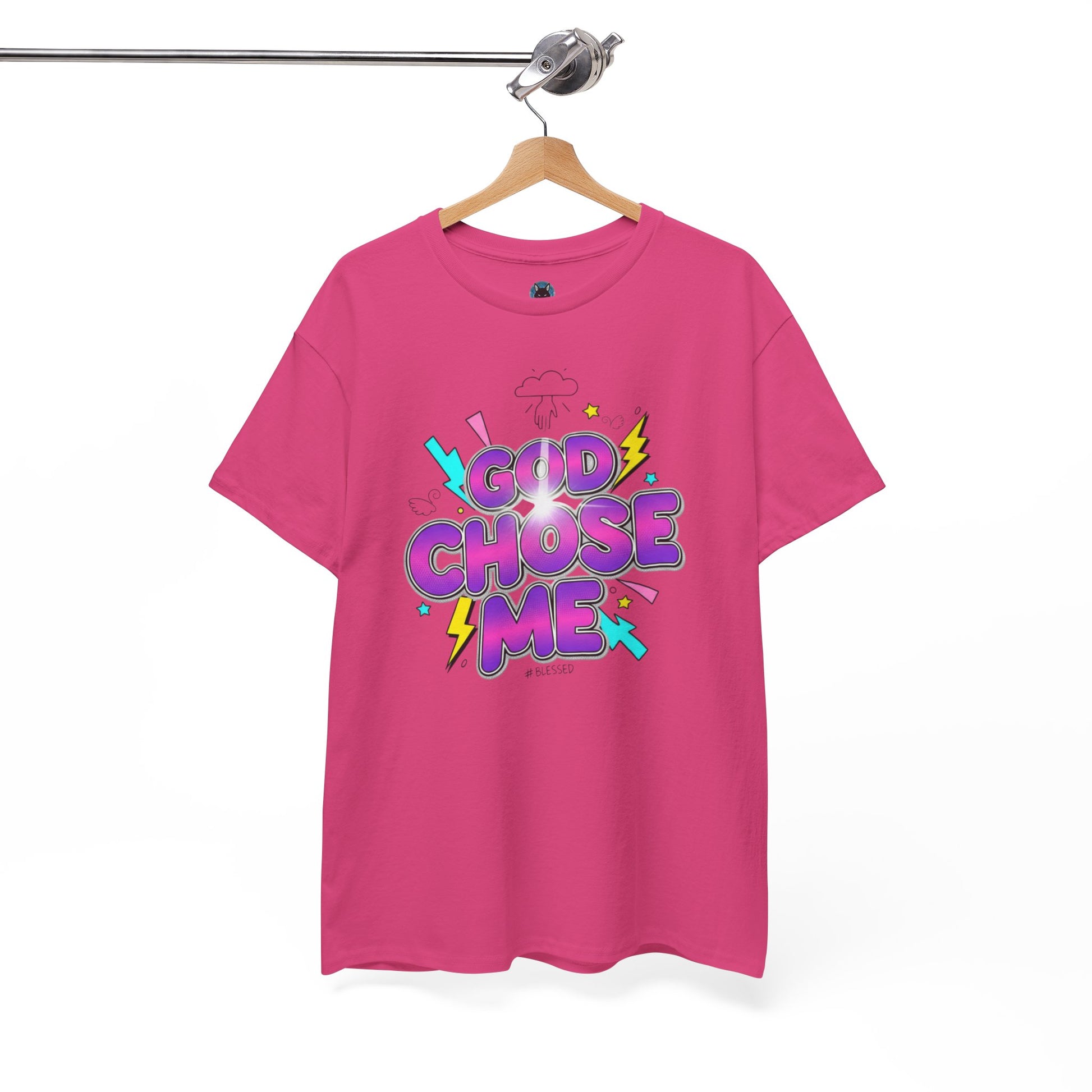 A God chose me T-shirt that exudes confidence and faith, perfect for those who want to make a statement about their beliefs. This tee can be worn casually or paired with other pieces for a more put-together look. Ideal for adults looking to express their spirituality and faith.
