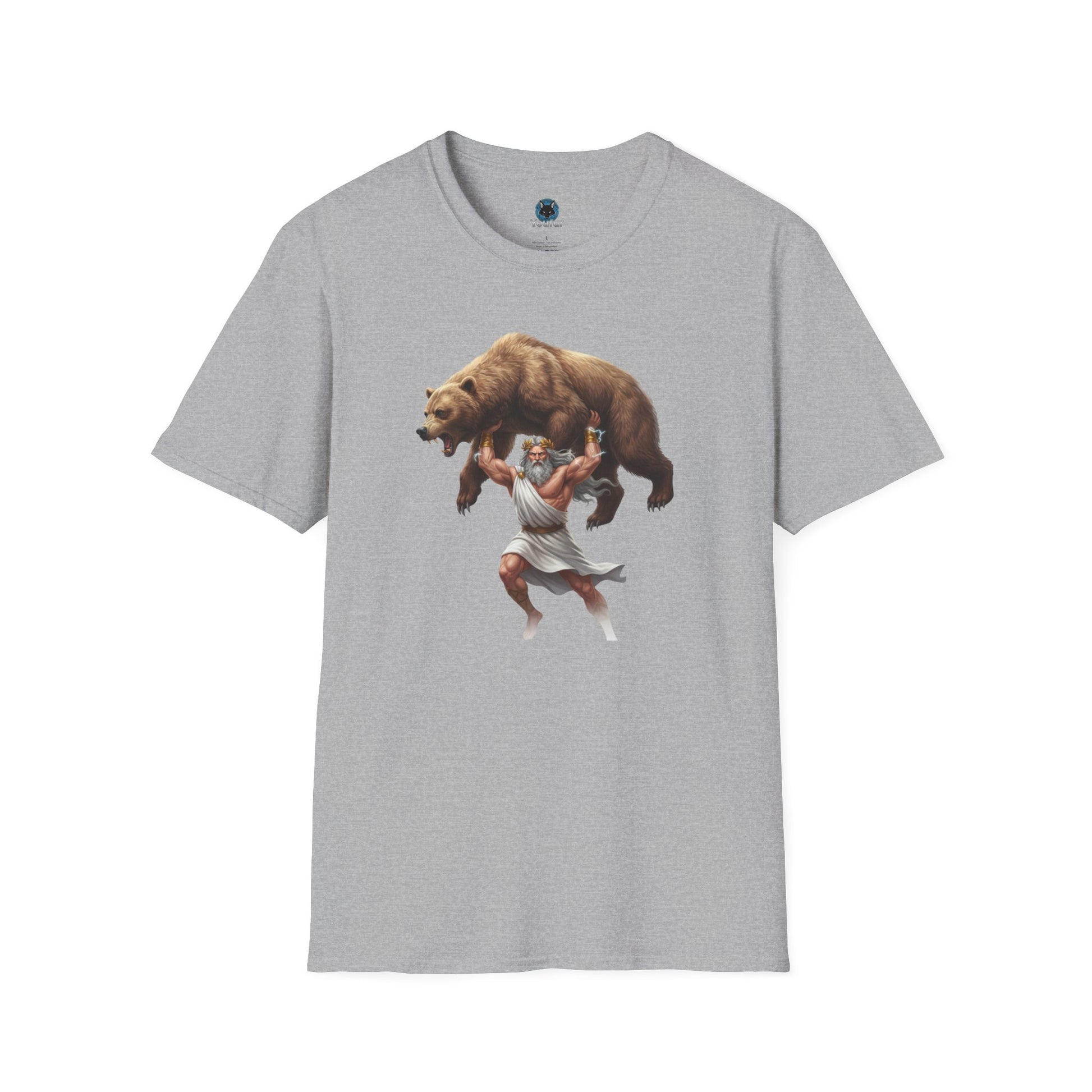Mythical Greek Zues Softstyle T-Shirt with Grizzly Bear Design