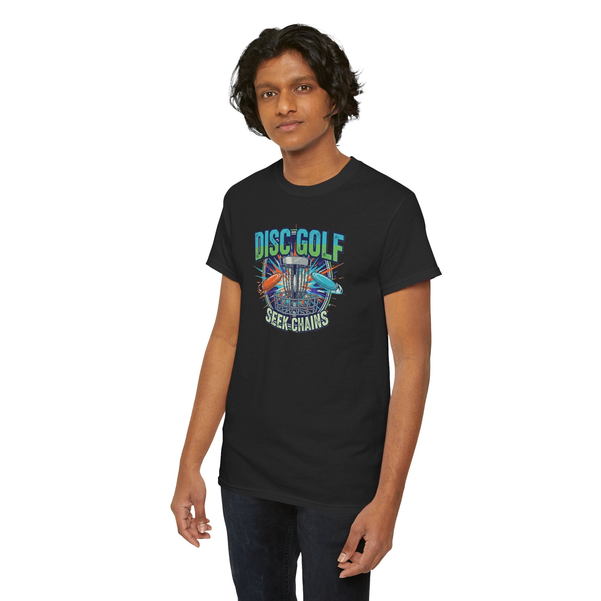 This seek chains disc golf Tee gives off a cool, laid-back vibe perfect for casual wear or days on the course. Ideal for disc golf enthusiasts, this Tee is a must-have for anyone looking for comfortable, stylish apparel. Perfect for birthdays, holidays, or just everyday wear.