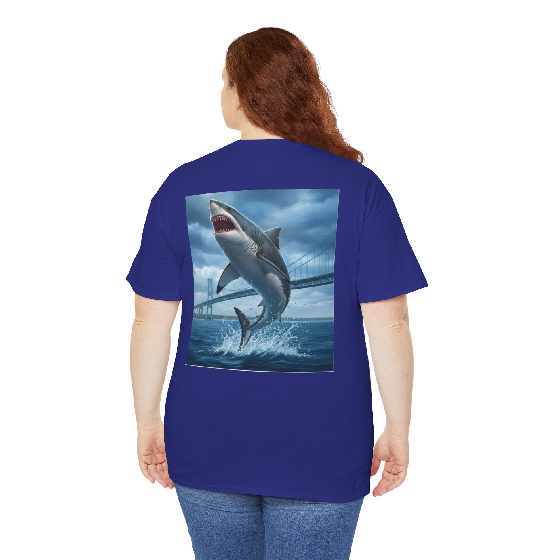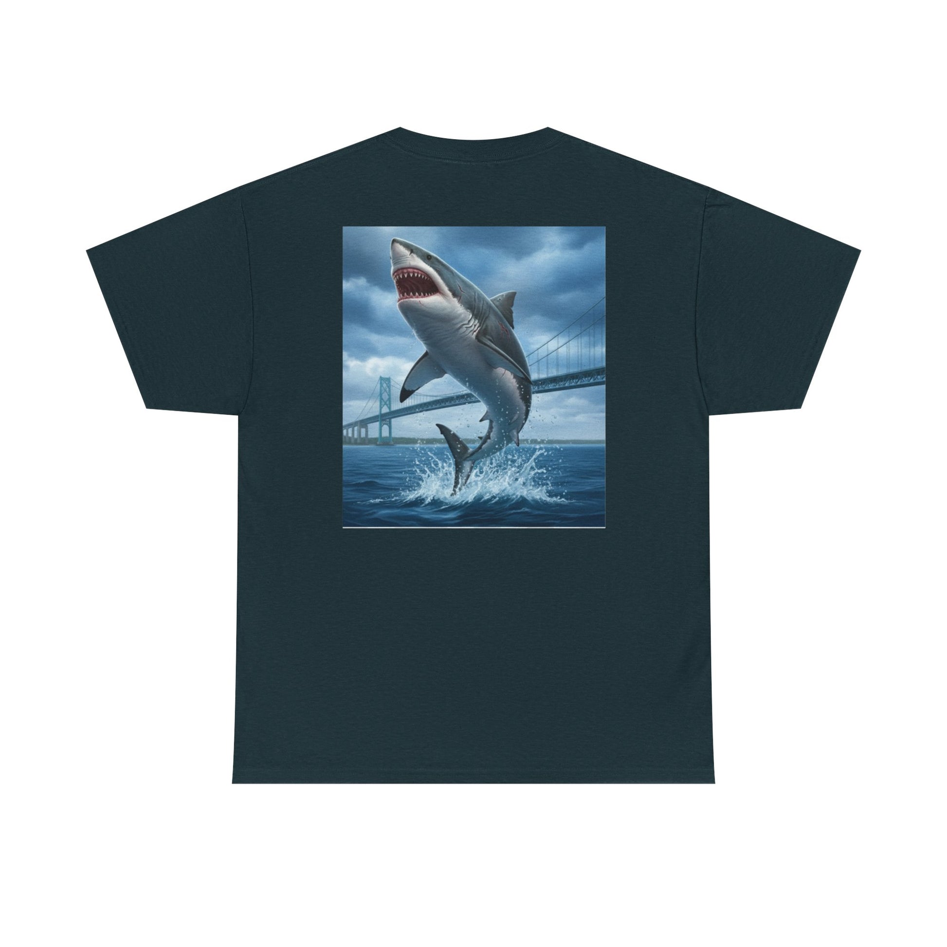 This shark jumping T-Shirt exudes a cool and adventurous vibe, perfect for those who love ocean-themed designs. It is a great addition to a casual wardrobe and makes a fun statement piece. Ideal for beach vacations, shark enthusiasts, and ocean lovers. Perfect for summer parties and beach outings.