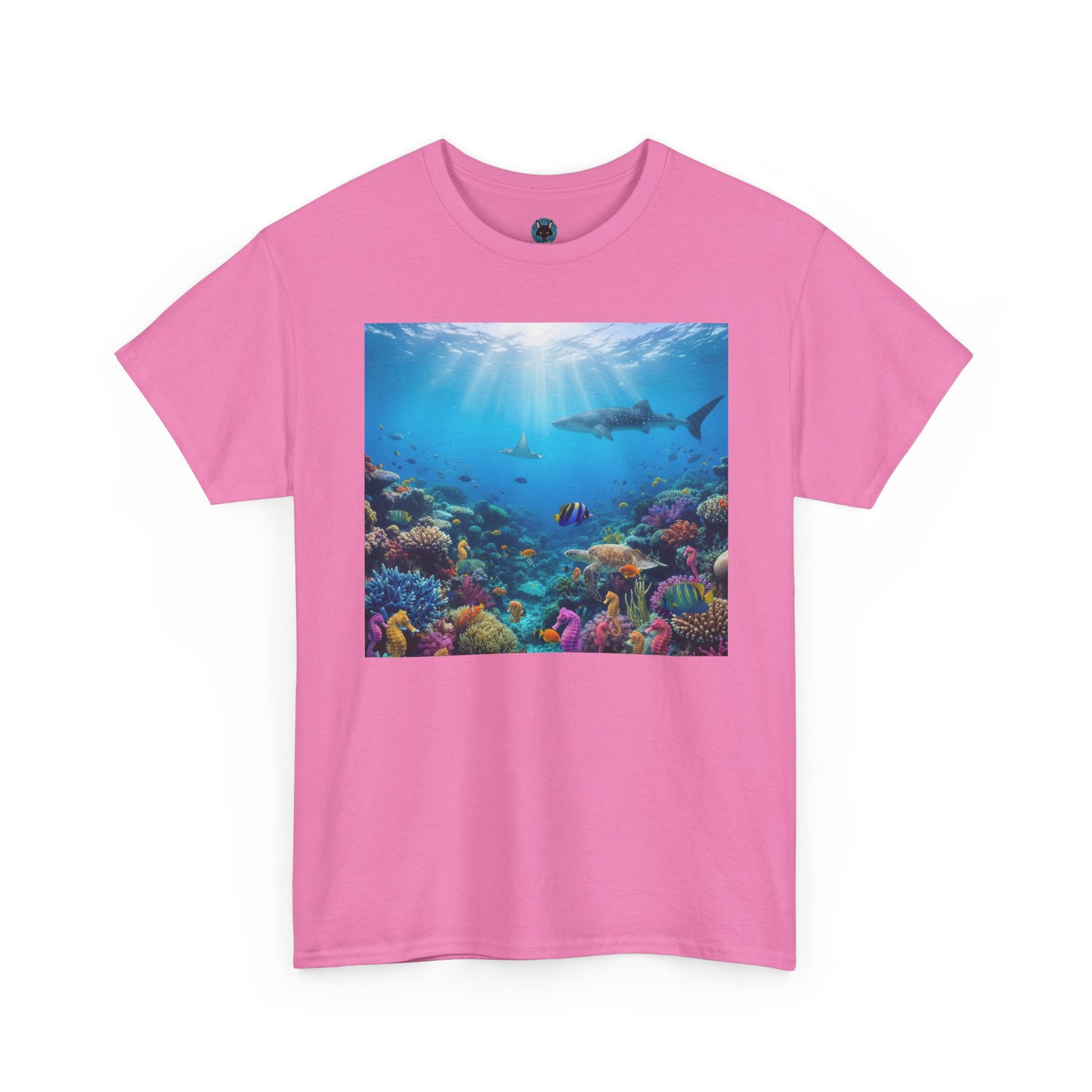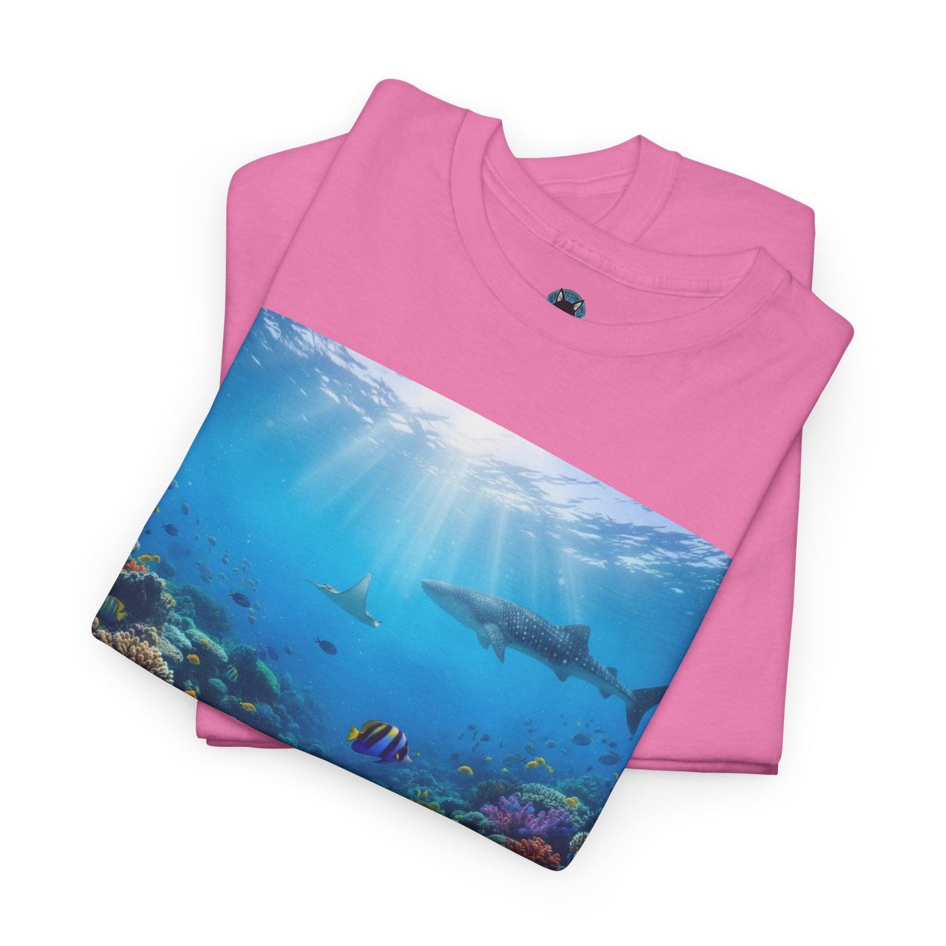 An underwater ocean tee featuring a shark design, perfect for anyone who loves marine life and wants to make a statement. This tee can be worn casually or dressed up for a fun beach day or ocean-themed event. Ideal for ocean lovers, marine biologists, or anyone who appreciates a unique and bold tee. Perfect for summer days or beach vacations.