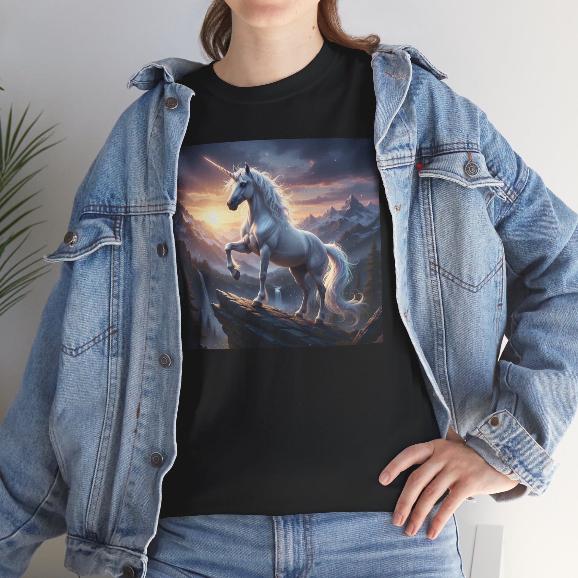A magical unicorn T-Shirt that brings a whimsical touch to any outfit. Perfect for those who love fantasy and mythical creatures. Ideal for casual wear or themed occasions like birthday parties or fantasy conventions.